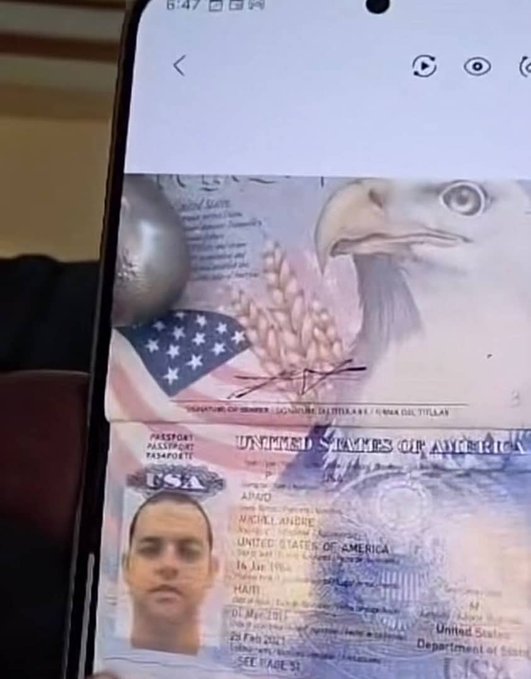 Afin de prouver que c’était bien chez Apaid que les stupéfiants qu’il avait filmées avaient été trouvées. Lanmò San Jou a montré des photos de 3 passeports américains comme preuve de la protection qu’il avait été engagé pour assurer à Apaid, y compris celle de sa femme et de son fils.
