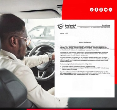 Dans un avis du Bureau des véhicules motorisés (BMV) de l’Ohio adressé à plusieurs migrants haïtiens bénéficiant du TPS, il leur est rappelé que « ce n’est pas parce qu’une décision de justice indique que leur statut n’est pas révoqué qu’ils peuvent conduire avec un permis expiré obtenu sous ce statut ».