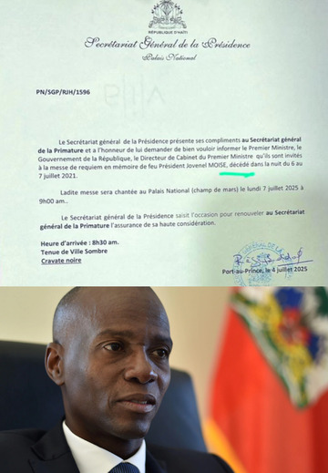 Le 4 juillet 2025, une lettre officielle émanant du Secrétariat Général de la Présidence haïtienne a invité plusieurs membres du gouvernement à une messe de requiem à l’occasion du quatrième anniversaire de la mort de l’ancien président Jovenel Moïse. Cependant, la formulation employée dans cette note a suscité de nombreuses réactions : il y est indiqué que le président est « décédé dans la nuit du 6 au 7 juillet 2021 ».