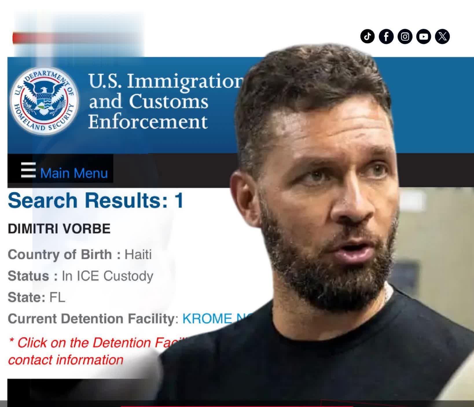 D’après ce que nous avons pu confirmer sur le site officiel de l’ICE, Dimitri Vorbe se trouve actuellement au centre de détention « Krome North SPC » à Miami. Selon les informations rapportées par le journaliste Frantz Duval pour “Le Nouvelliste”, ce sont des agents d’enquête du Département de la Sécurité intérieure (HSI) qui ont arrêté l’homme d’affaires le mardi 23 septembre 2025.