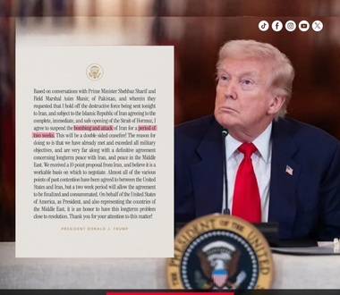 « Alors qu’il a été posé un ultimatum, Trump affirme avoir accepté de suspendre les bombardements contre l’Iran pendant deux semaines. »